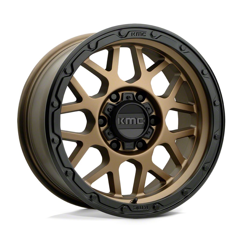 KMC Grenade Off-Road Matte Bronze with Matte Black Lip 5-Lug Wheel; 18x8.5; 0mm Offset is a perfect blend of style and rugged design, making it a standout choice for those looking to enhance their vehicle's aesthetic appeal. Its bold, dark metallic finish pairs seamlessly with a wide variety of vehicle styles, offering both modernity and durability. Built by KMC, this wheel is designed to elevate your vehicle's appearance with its robust presence.