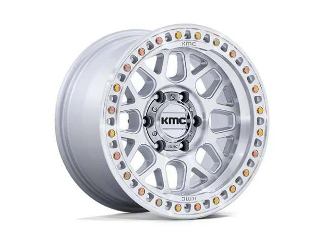 KMC GRS Gloss Silver with Machined Face 8-Lug Wheel; 17x9; -12mm Offset is a perfect blend of style and rugged design, making it a standout choice for those looking to enhance their vehicle's aesthetic appeal. Its bold, dark metallic finish pairs seamlessly with a wide variety of vehicle styles, offering both modernity and durability. Built by KMC, this wheel is designed to elevate your vehicle's appearance with its robust presence.