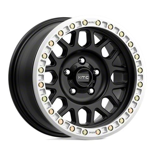 This 17x8.5 KMC Grenade Desert Beadlock Satin Black 6-Lug Wheel is completed in a high-quality satin black finish that stands out immediately. There's a durable clear coat that protects against the hazards of driving.