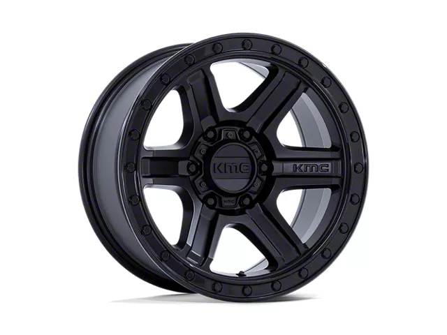 KMC Outrun Matte Black with Gloss Black Lip 6-Lug Wheel; 17x8.5; -10mm Offset is a perfect blend of style and rugged design, making it a standout choice for those looking to enhance their vehicle's aesthetic appeal. Its bold, dark metallic finish pairs seamlessly with a wide variety of vehicle styles, offering both modernity and durability. Built by KMC, this wheel is designed to elevate your vehicle's appearance with its robust presence.