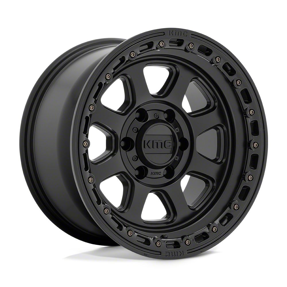 KMC Chase Satin Black with Gloss Black Lip 8-Lug Wheel; 20x9; 0mm Offset is a perfect blend of style and rugged design, making it a standout choice for those looking to enhance their vehicle's aesthetic appeal. Its bold, dark metallic finish pairs seamlessly with a wide variety of vehicle styles, offering both modernity and durability. Built by KMC, this wheel is designed to elevate your vehicle's appearance with its robust presence.