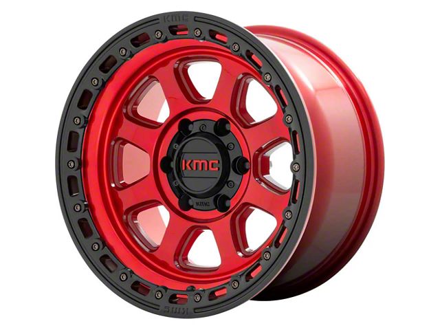 KMC Chase Candy Red with Black Lip 6-Lug Wheel; 17x9; 0mm Offset - Elevate your vehicle's style with this wheel's striking design. Reflecting the KMC's commitment to quality, it promises to add a touch of elegance and a strong character to your ride. Perfect for those seeking to make an impression without saying a word.