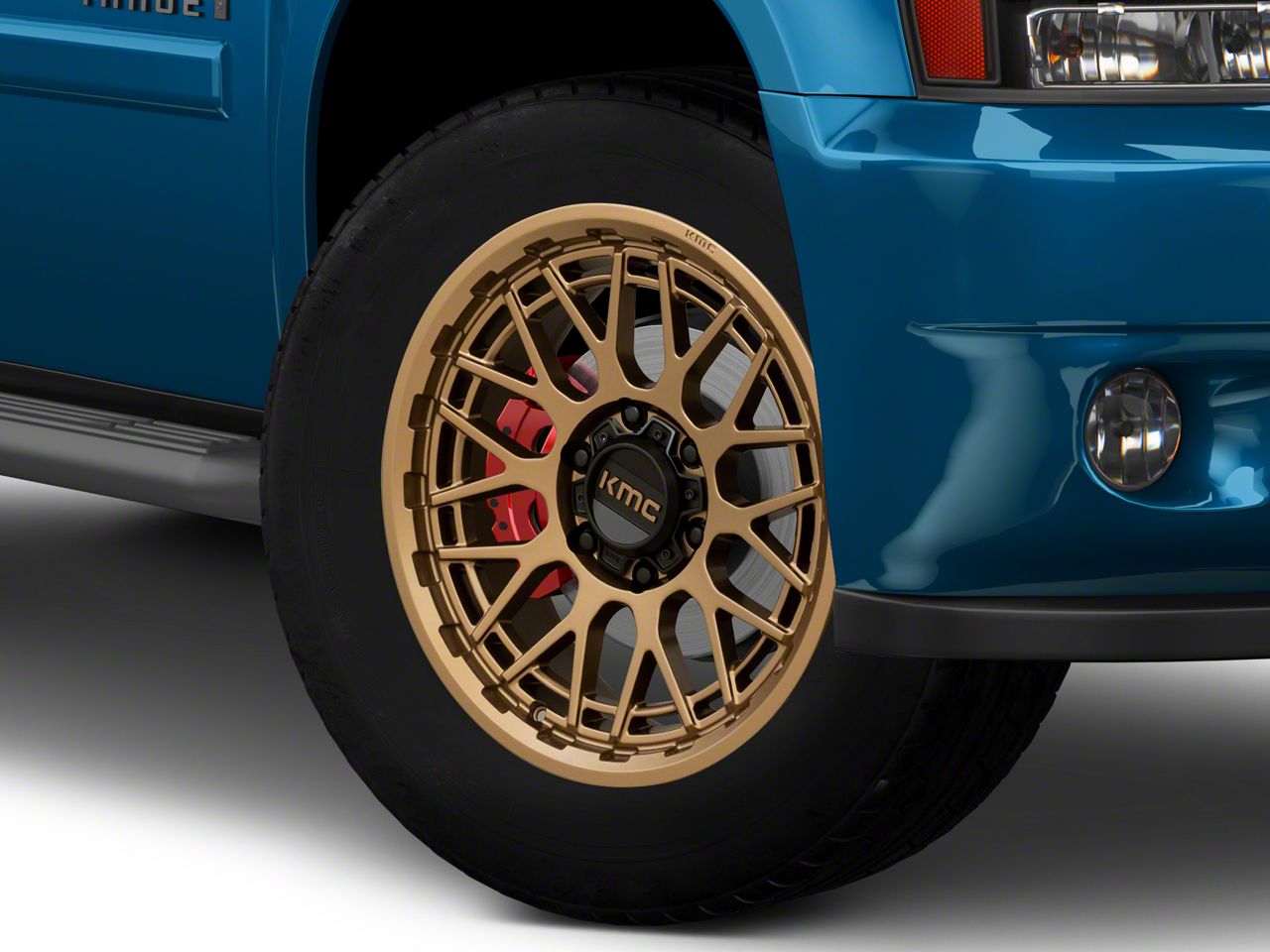 Application. This KMC Technic Matte Bronze 6-Lug Wheel; 20x9; 0mm Offset with a backspace of 5 Inch, 127mm; and bolt pattern of 6 x 139.7mm (6 x 5.5-Inch) contributes to impeccable alignment and driving stability. Designed to fit 2007-2014 Tahoe models, sold individually.