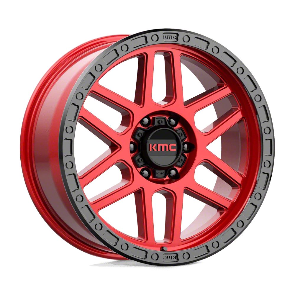 KMC Mesa Candy Red with Black Lip 6-Lug Wheel; 17x9; -12mm Offset The KMC Mesa Candy Red with Black Lip 6-Lug Wheel combines a sleek, sophisticated design with premium construction that enhances the visual appeal and complements a wide range of vehicle styles. This wheel is perfect for those seeking to make a bold statement while maintaining elegance and robustness.