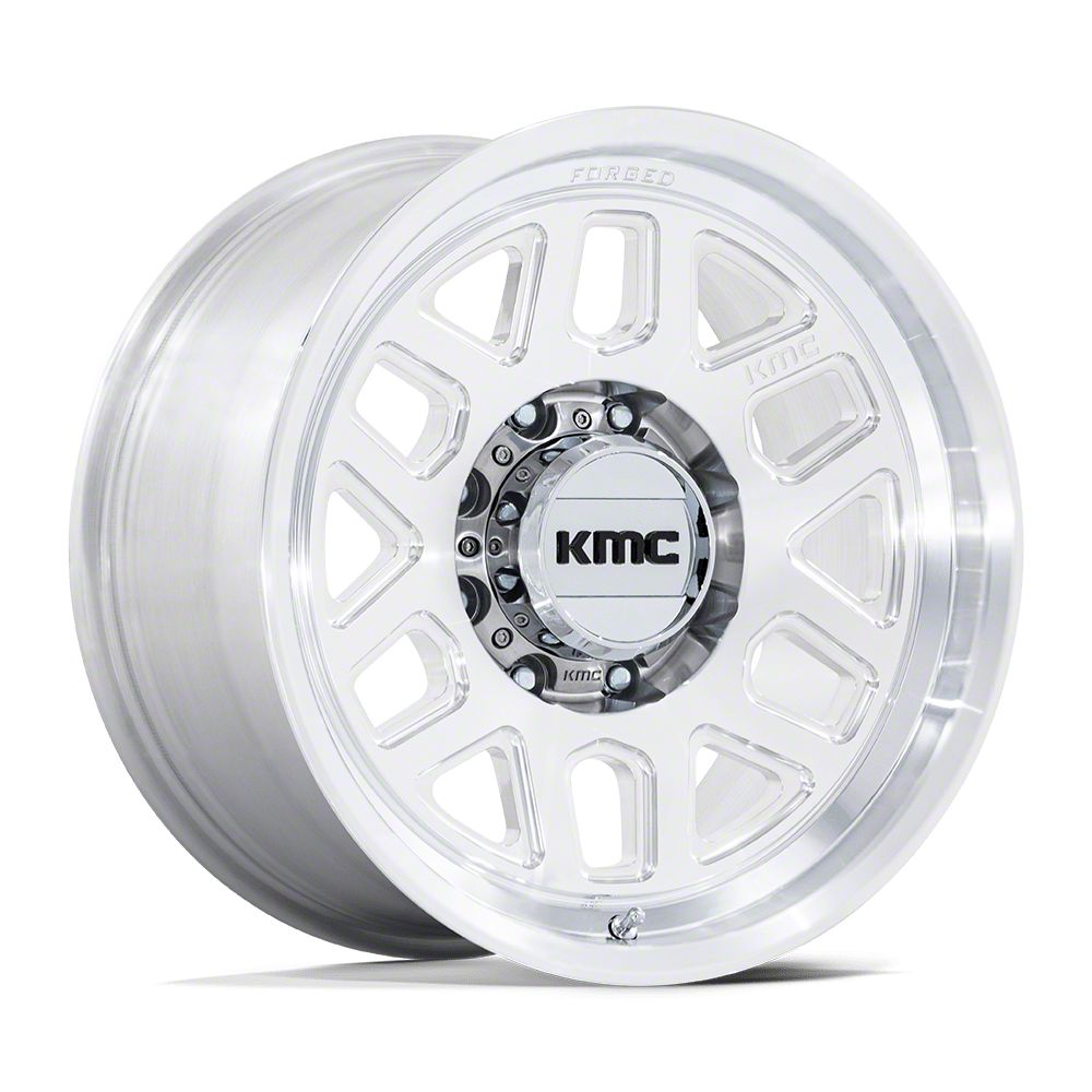 KMC Mesa Forged Monoblock Raw Machined 8-Lug Wheel; 18x9; 0mm Offset is a perfect blend of style and rugged design, making it a standout choice for those looking to enhance their vehicle's aesthetic appeal. Its bold, dark metallic finish pairs seamlessly with a wide variety of vehicle styles, offering both modernity and durability. Built by KMC, this wheel is designed to elevate your vehicle's appearance with its robust presence.