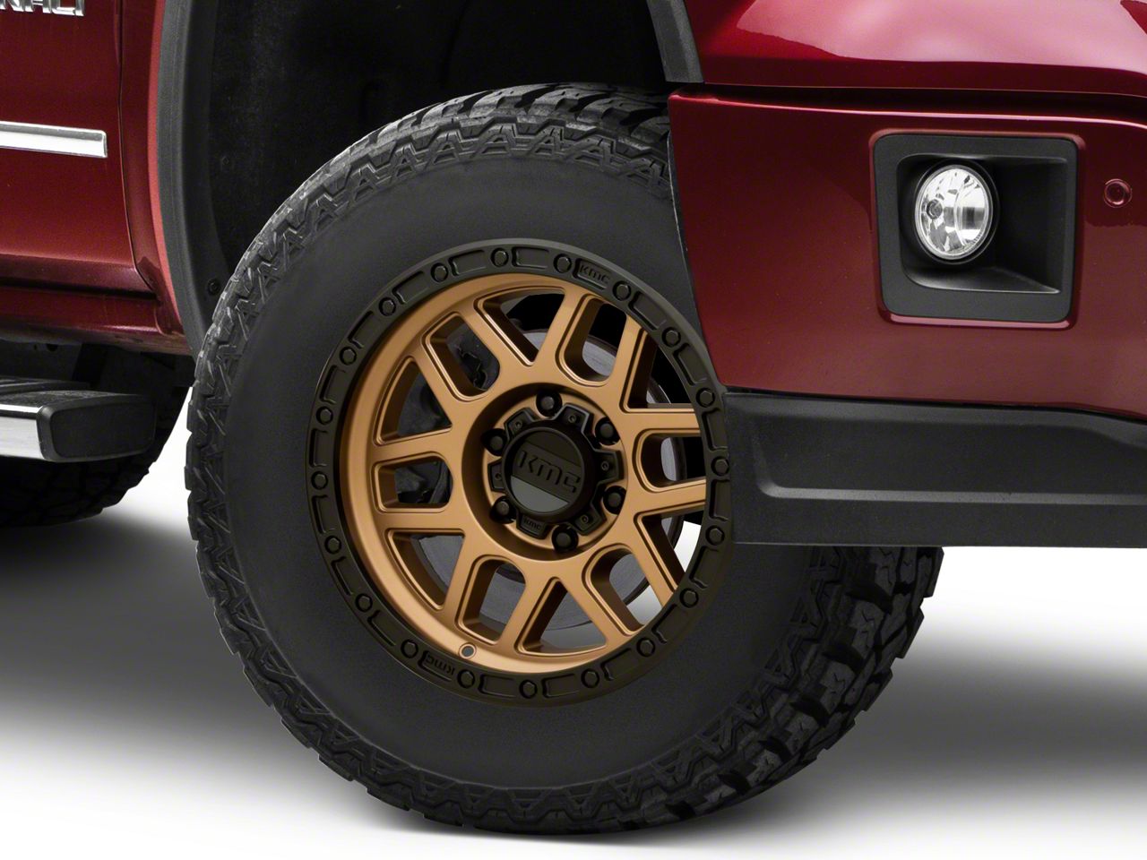 Application. This KMC Mesa Matte Bronze with Black Lip 6-Lug Wheel; 17x9; 18mm Offset, with a backspace of 5.709 Inch, 145.1mm and bolt pattern of 6 x 139.7mm (6 x 5.5-Inch), ensures proper alignment and stability. It's designed to fit the 2014-2018 Sierra 1500 models, enhancing both the look and the overall driving experience. Sold individually.