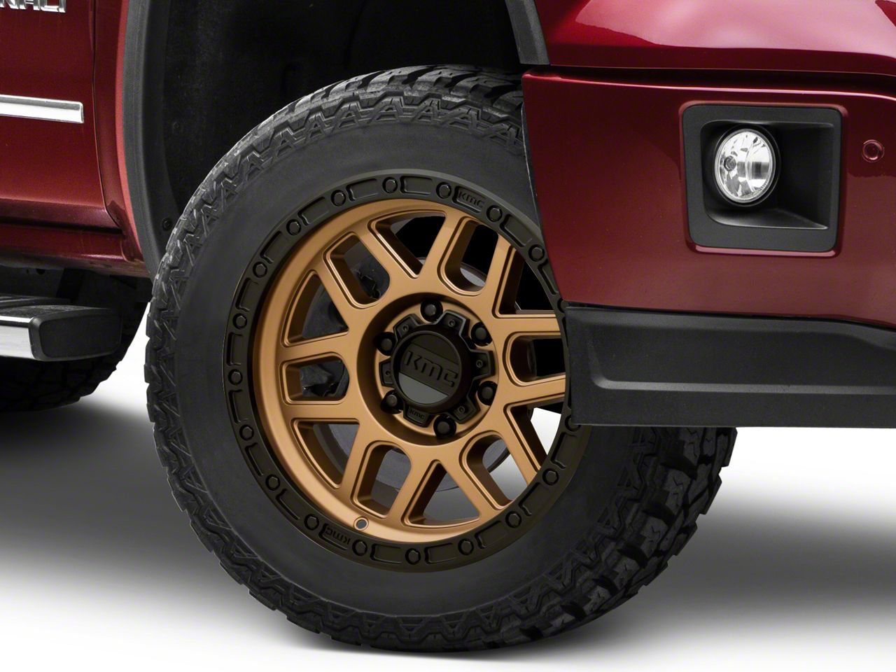 Application. This KMC Mesa Matte Bronze with Black Lip 6-Lug Wheel; 20x9; 18mm Offset, with a backspacing of 5.709 Inch, 145.1mm and a bolt pattern of 6 x 139.7mm (6 x 5.5-Inch), is designed to fit 2014-2018 Sierra 1500 models. Sold individually, it's an ideal choice for those seeking to elevate their vehicle's appearance and performance.