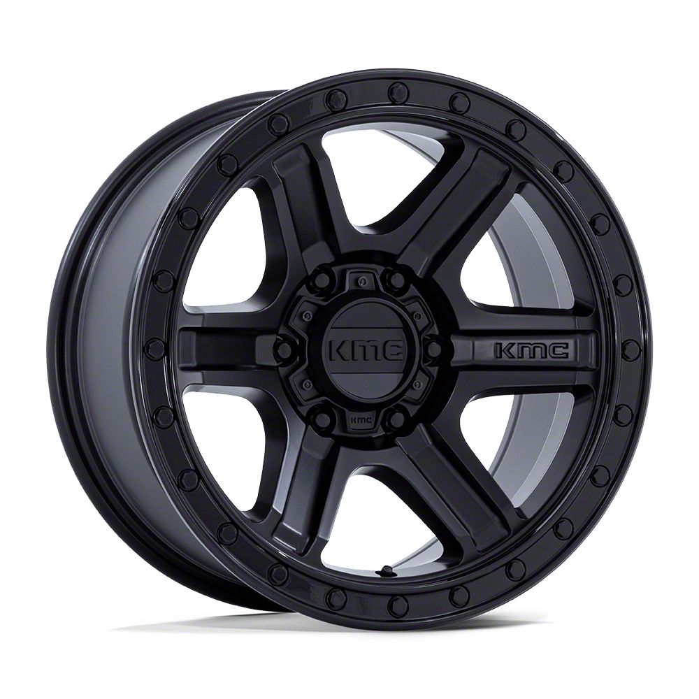 KMC Outrun Matte Black with Gloss Black Lip 6-Lug Wheel; 17x8.5; -10mm Offset is a perfect blend of style and rugged design, making it a standout choice for those looking to enhance their vehicle's aesthetic appeal. Its bold, dark metallic finish pairs seamlessly with a wide variety of vehicle styles, offering both modernity and durability. Built by KMC, this wheel is designed to elevate your vehicle's appearance with its robust presence.