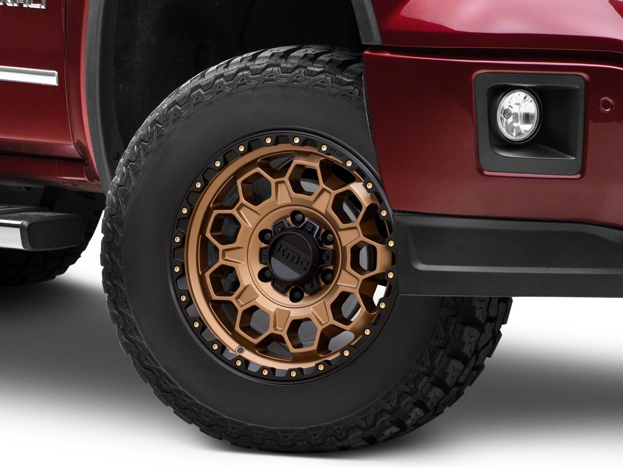 Application. This KMC Trek Matte Bronze with Black Lip 6-Lug Wheel; 17x8; 20mm Offset, with a backspace of 5.287 Inch, 134.3mm and bolt pattern of 6 x 139.7mm (6 x 5.5-Inch), is designed to provide not only a striking visual appeal but also to contribute significantly to the alignment and driving stability of the vehicle. Its specifications ensure a precise fit with the vehicle model, enhancing the overall driving experience. Built to fit the 2014-2018 Sierra 1500, this wheel is sold individually.