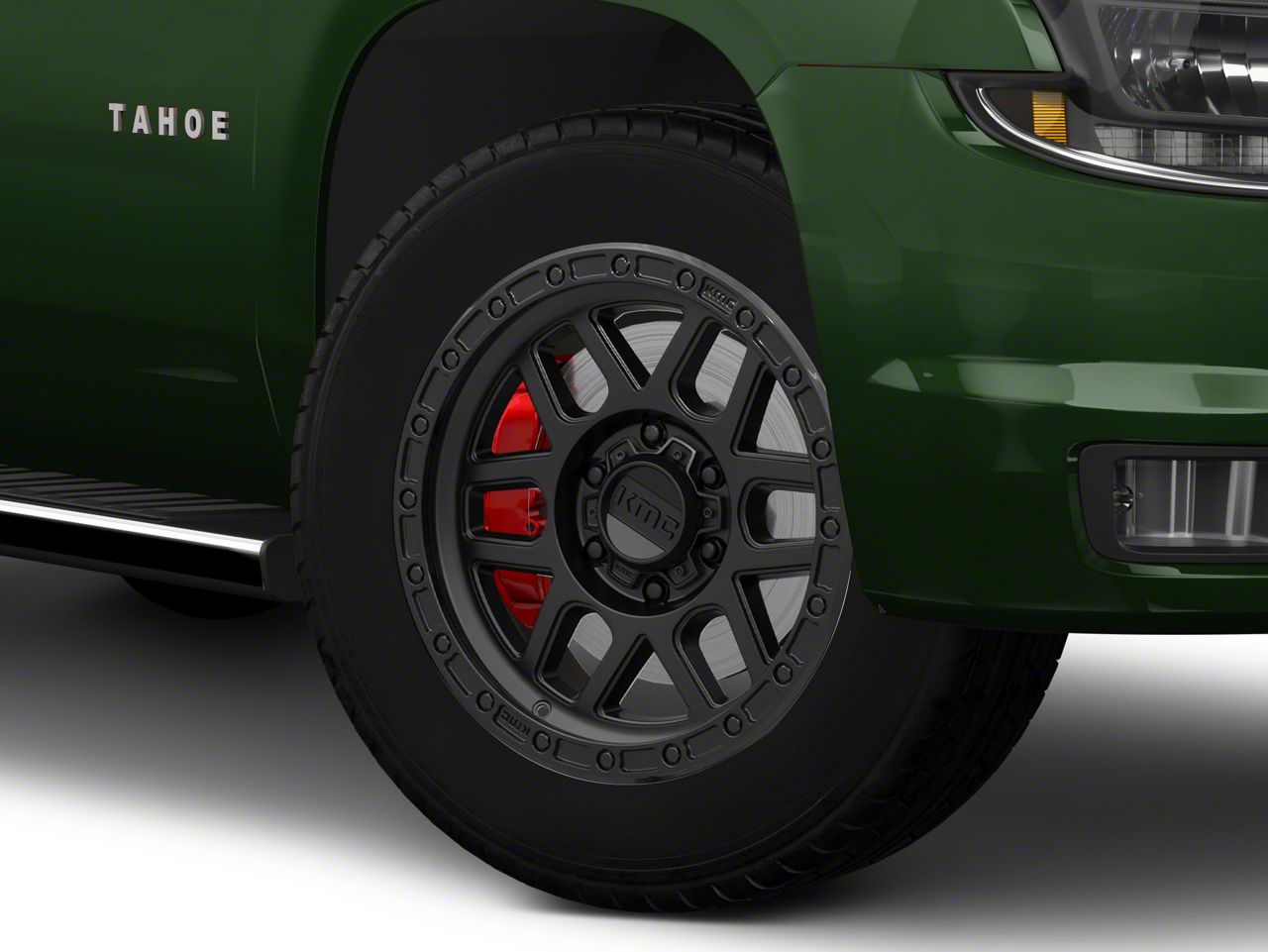 Application. This KMC Mesa Satin Black with Gloss Black Lip 6-Lug Wheel; 20x9; 18mm Offset with a backspace of 5.709 Inch, 145.1mm and bolt pattern of 6 x 139.7mm (6 x 5.5-Inch) ensures impeccable alignment and driving stability. It's designed to fit the 2015-2020 Tahoe models, sold individually.KMC KM54429068718