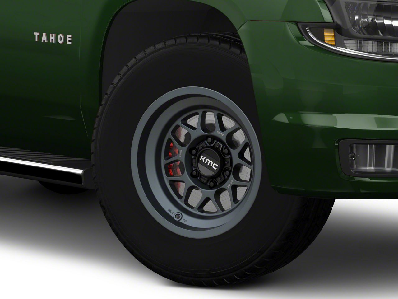 Application. This KMC Terra Metallic Blue 6-Lug Wheel; 18x8.5; 0mm Offset, with a backspacing of 4.75 Inch, 120.6mm; and bolt pattern of 6 x 139.7mm (6 x 5.5-Inch), provides enhanced alignment and stability. Designed to fit the 2015-2020 Tahoe models, it offers precise fitment and is sold individually.
