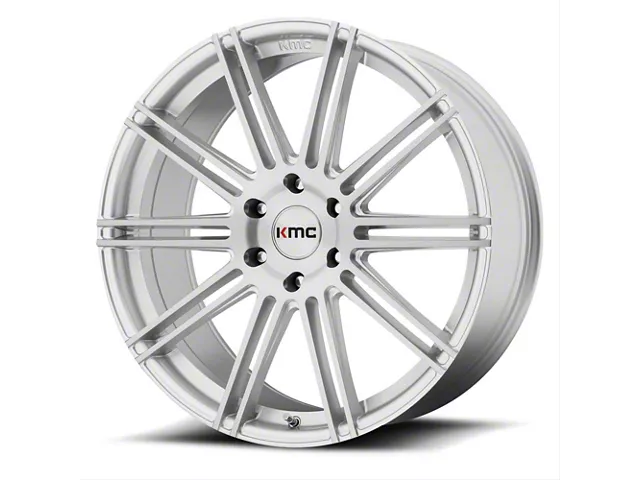 KMC Channel Brushed Silver 6-Lug Wheel; 22x9.5; 30mm Offset offers a striking balance between style and durability. The design speaks to the brand's commitment to quality, enhancing the vehicle's appearance with its distinct look. This wheel, with its unique aesthetics, is ideal for drivers who appreciate a blend of modern design and robust functionality.