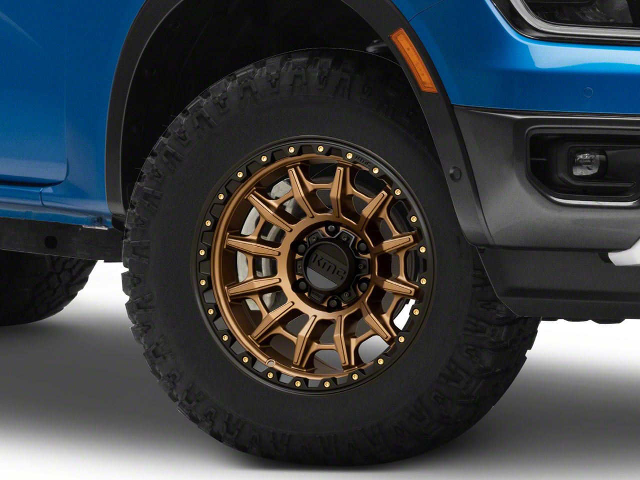 Application. This KMC wheel, Carnage Matte Bronze with Black Lip 6-Lug Wheel; 17x9; 0mm Offset, features a backspace of 5 Inch, 127mm and a bolt pattern of 6 x 139.7mm . These specifications help ensure proper wheel alignment and enhance driving stability. It is designed to fit the 2024-2026 Ranger models. Sold individually.