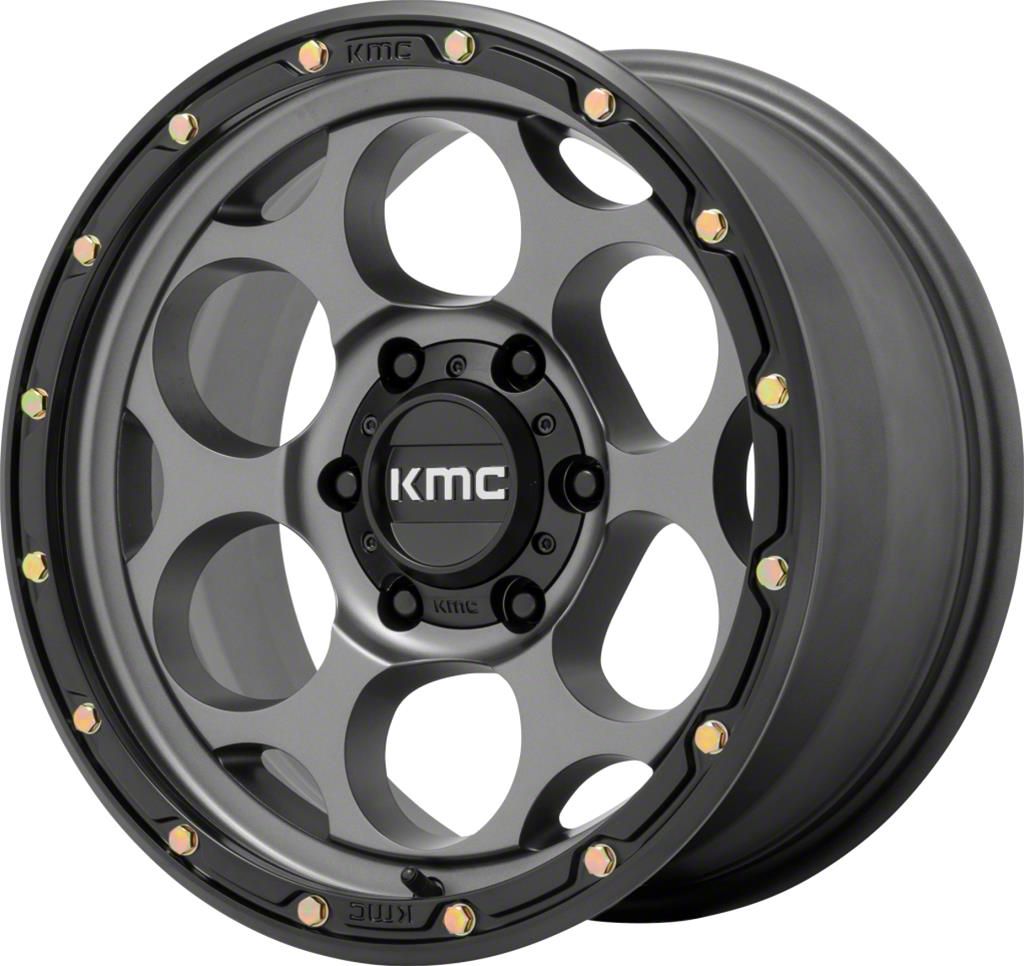 Satin Gray Finish with Black Lip. This 18x8.5 KMC Wheels Dirty Harry Series Wheel is completed in a high quality satin gray finish with a black lip for subtle contrast in appearance that everyone will envy. For added protection and good looks, this Wheel features a durable clear coat that is tough enough to stand up against the hazards of everyday driving - including road chips and pitting.