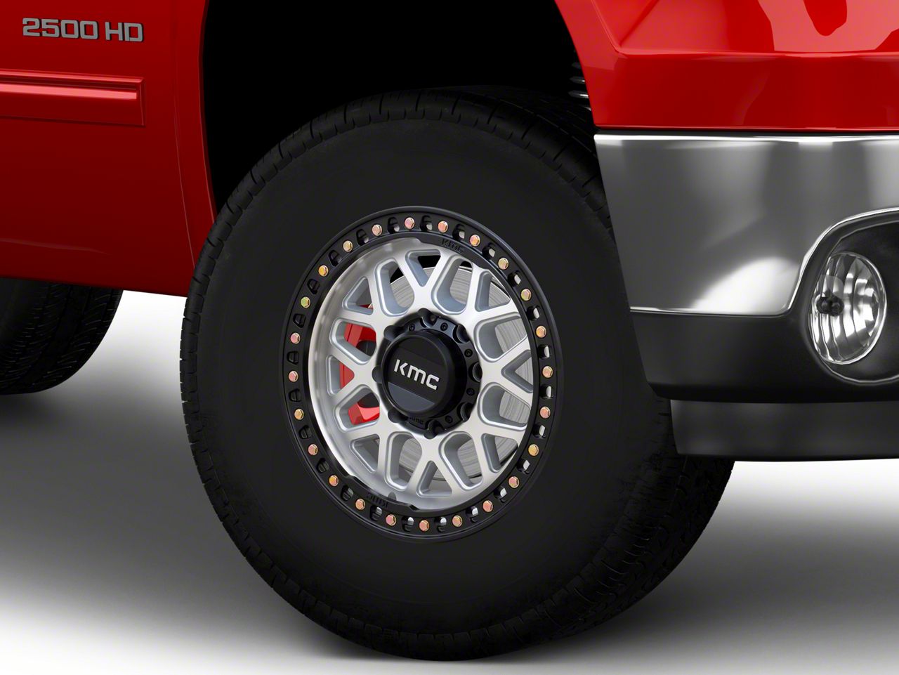 KMC GRS Machined with Satin Black Lip 8-Lug Wheel; 17x8.5; 0mm Offset is a wheel that stands out with its refined design and precision finish, making it a perfect match for vehicles that demand a sophisticated yet aggressive appearance.