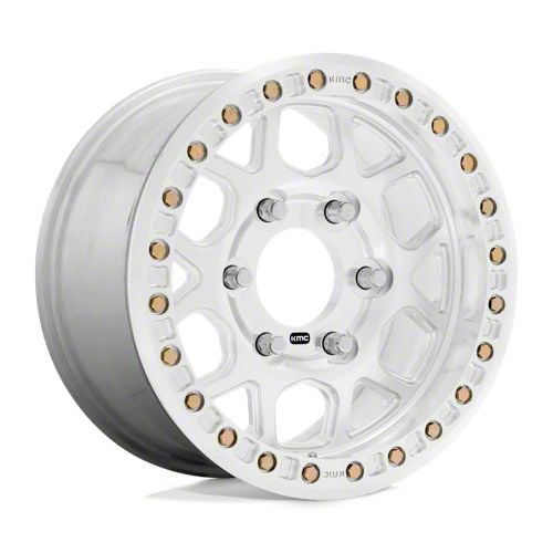 This 17x9 KMC Mesa Forged Beadlock Raw Machined 6-Lug Wheel is completed in a machined finish, but there is no protective coating and will tarnish. Please take care of this wheel.