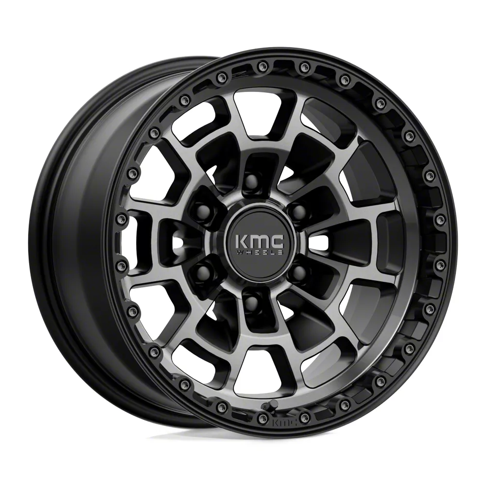 KMC Summit Satin Black with Gray Tint 6-Lug Wheel; 16x8; 0mm Offset is a perfect blend of style and rugged design, making it a standout choice for those looking to enhance their vehicle's aesthetic appeal. Its bold, dark metallic finish pairs seamlessly with a wide variety of vehicle styles, offering both modernity and durability. Built by KMC, this wheel is designed to elevate your vehicle's appearance with its robust presence.