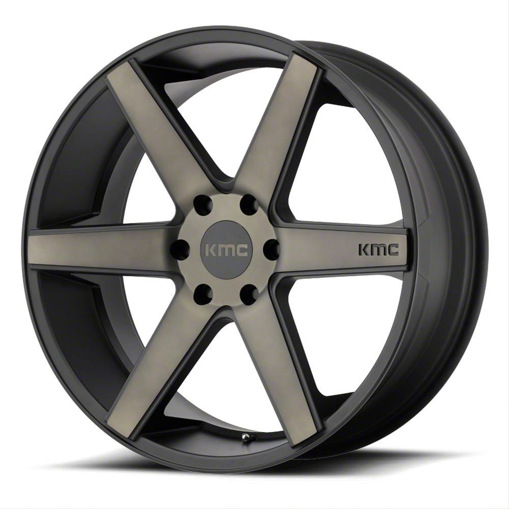 KMC District Matte Black Dark Tint 6-Lug Wheel; 22x9; 15mm Offset. The KMC District Matte Black Dark Tint 6-Lug Wheel offers a striking balance of style and refinement. Its unique design accentuates the vehicle's aesthetic, while the premium construction underscores its robust nature. This wheel is a perfect choice for those seeking both elegance and a strong visual statement.