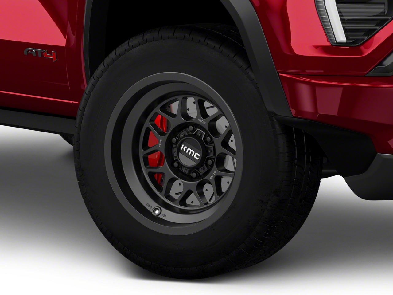 KMC Terra Satin Black 6-Lug Wheel; 18x8.5; 0mm Offset. The KMC Terra Satin Black 6-Lug Wheel offers a striking balance of style and refinement. Its unique design accentuates the vehicle's aesthetic, while the premium construction underscores its robust nature. This wheel is a perfect choice for those seeking both elegance and a strong visual statement.