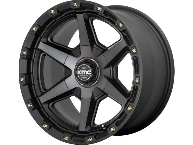 KMC Signal Satin Black with Gray Tint 6-Lug Wheel; 17x9; 18mm Offset. The KMC Signal Satin Black with Gray Tint 6-Lug Wheel offers a striking balance of style and refinement. Its unique design accentuates the vehicle's aesthetic, while the premium construction underscores its robust nature. This wheel is a perfect choice for those seeking both elegance and a strong visual statement.