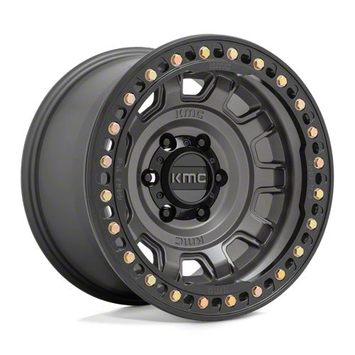 This 17x9 KMC Tank Beadlock Anthracite 6-Lug Wheel is completed in a high-quality anthracite finish that looks sensational. There's a durable clear coat that protects the wheel from the hazards of driving.