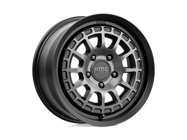 KMC Canyon Satin Black with Gray Tint 5-Lug Wheel; 17x8; 35mm Offset The KMC Canyon Satin Black with Gray Tint 5-Lug Wheel combines a sleek, sophisticated design with premium construction that enhances the visual appeal and complements a wide range of vehicle styles. This wheel is perfect for those seeking to make a bold statement while maintaining elegance and robustness.