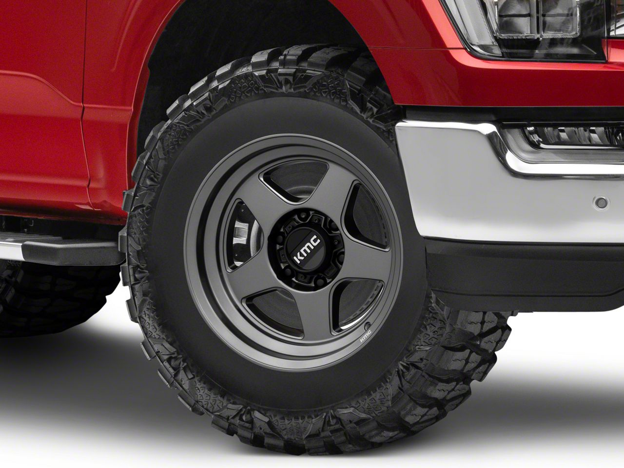Application. The KMC Lobo Matte Anthracite 6-Lug Wheel; 17x8.5; -10mm Offset, with a backspace of 4.357 Inch, 110.7mm and a bolt pattern of 6 x 135mm (6 x 5.31-Inch), is designed to enhance alignment and stability for a smooth driving experience. Specifically tailored to fit 2021-2026 F-150 models, it ensures a perfect blend of style and functionality. Sold individually, this wheel is an ideal upgrade for your vehicle.
