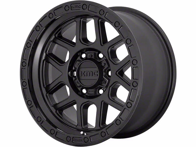 KMC Mesa Satin Black with Gloss Black Lip 8-Lug Wheel; 20x9; 18mm Offset: Redefine your vehicle's style with the KMC Mesa Satin Black with Gloss Black Lip 8-Lug Wheel. This wheel's elegant design and striking finish embody a blend of sophistication and boldness, perfectly complementing a wide array of vehicle aesthetics. Crafted from high-quality materials, it's a testament to durability and style.