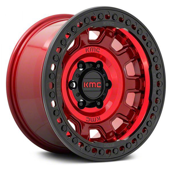 KMC Tank Beadlock Candy Red 8-Lug Wheel; 17x9; -38mm Offset - This wheel's elegant design will certainly enhance your vehicle's aesthetic, complementing its luxury and performance. The unique styling of this wheel makes it an ideal choice for a standout quality of your ride, reflecting the premium quality associated with the KMC brand.