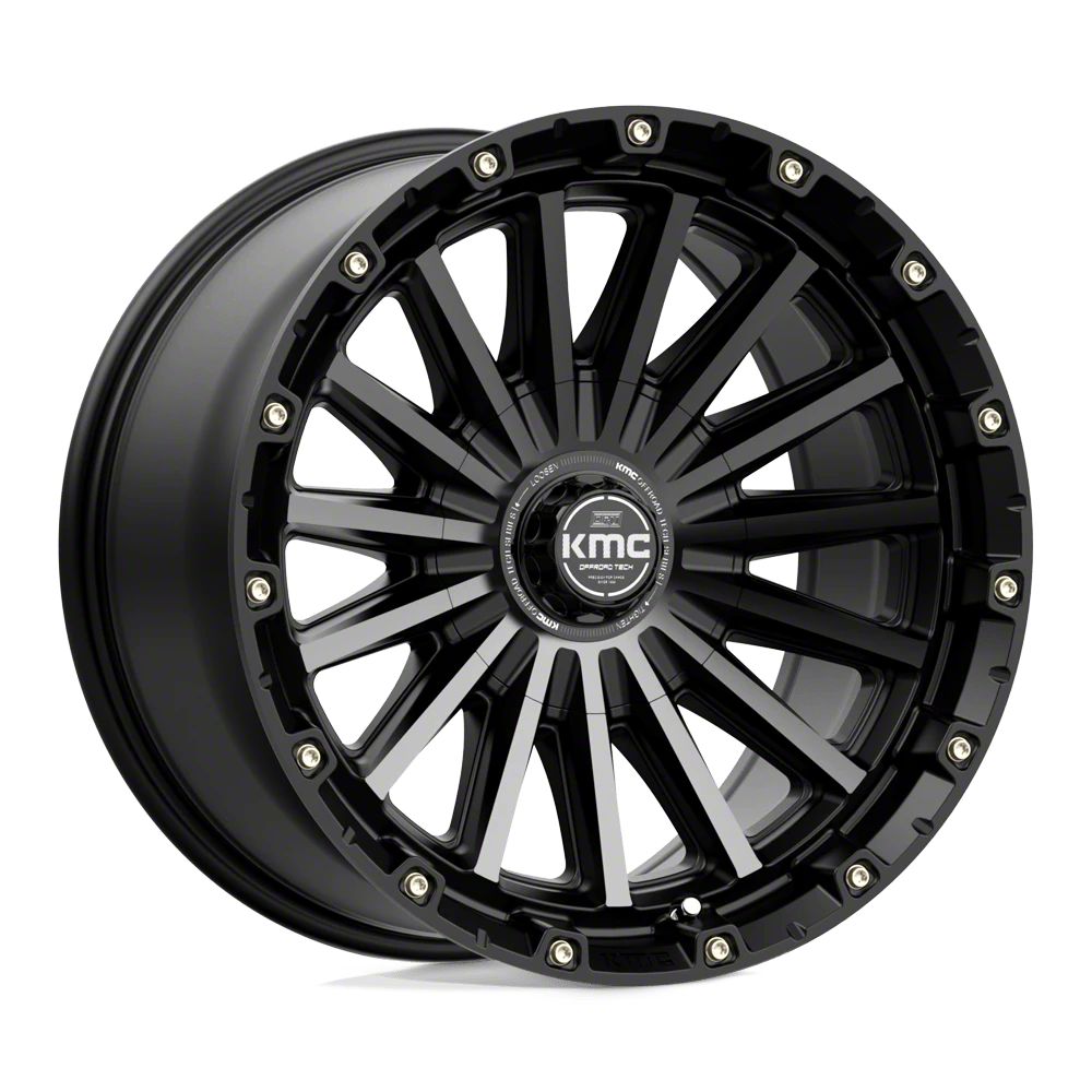 KMC Signal Satin Black with Gray Tint 5-Lug Wheel; 20x9; 18mm Offset The KMC Signal Satin Black with Gray Tint 5-Lug Wheel combines a sleek, sophisticated design with premium construction that enhances the visual appeal and complements a wide range of vehicle styles. This wheel is perfect for those seeking to make a bold statement while maintaining elegance and robustness.