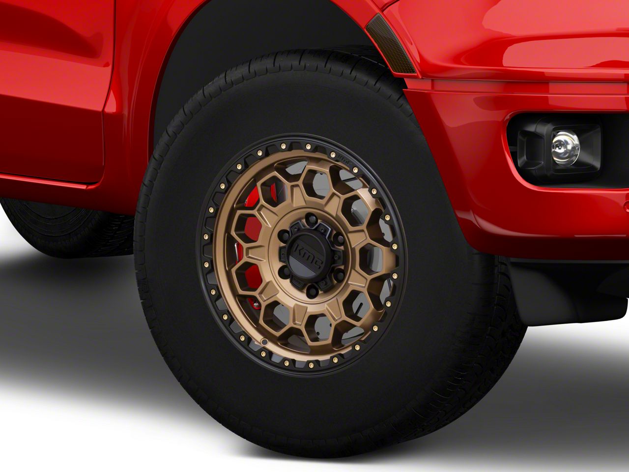 Application. This KMC Trek Matte Bronze with Black Lip 6-Lug Wheel; 17x9; -12mm Offset with a backspace of 4.528 Inch, 115.1mm; and bolt pattern of 6 x 139.7mm (6 x 5.5-Inch), contributes to alignment, driving stability, and ensures a perfect fit with the vehicle model. Designed to fit the 2019-2023 Ranger. Sold individually.