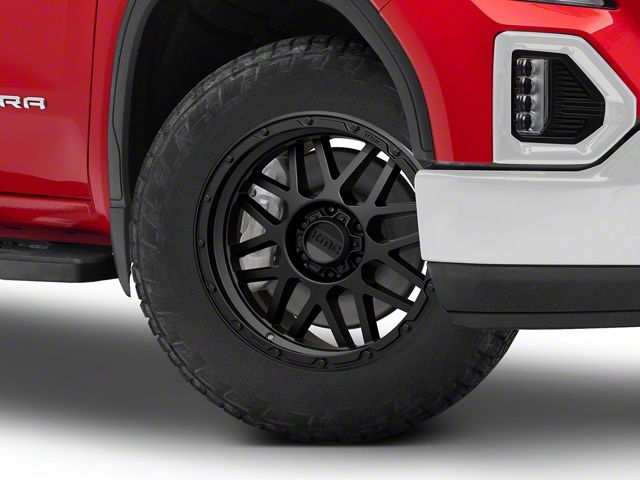 Application. This KMC Grenade Off-Road Matte Black 6-Lug Wheel; 20x9; 18mm Offset, with a backspace of 5.709 Inch, 145.1mm and bolt pattern of 6 x 139.7mm (6 x 5.5-Inch), is designed to enhance alignment and driving stability, ensuring a perfect fit with the vehicle model. Specifically designed to fit 2019-2026 Sierra 1500 models, this wheel's specifications contribute to a seamless alignment and stable driving experience by ensuring the wheel fits perfectly within the vehicle's wheel well, reducing the risk of rubbing issues and optimizing handling characteristics. Sold individually.
