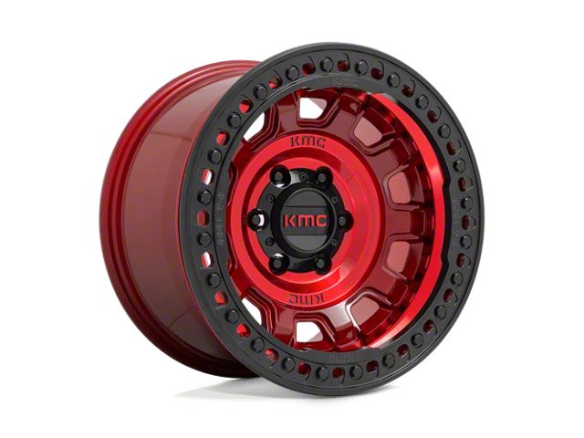 KMC Tank Beadlock Candy Red 6-Lug Wheel; 17x9; -38mm Offset: Redefine your vehicle's style with the KMC Tank Beadlock Candy Red 6-Lug Wheel. This wheel's elegant design and striking finish embody a blend of sophistication and boldness, perfectly complementing a wide array of vehicle aesthetics. Crafted from high-quality materials, it's a testament to durability and style.