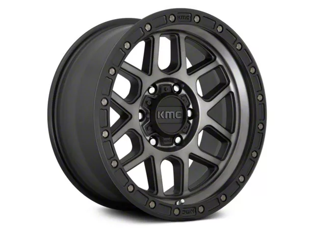 KMC Mesa Satin Black with Gray Tint 8-Lug Wheel; 20x9; 18mm Offset. Enhance your vehicle's look with the KMC Mesa Satin Black with Gray Tint 8-Lug Wheel. This premium wheel adds a touch of elegance and class to your vehicle, complementing its sophisticated aesthetic.