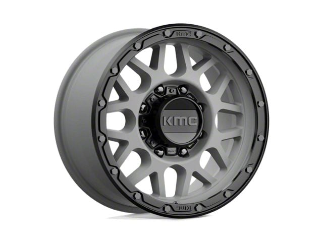 KMC Grenade Off-Road Matte Gray with Matte Black Lip 8-Lug Wheel; 17x9; 18mm Offset exudes sophistication with its finish, offering a sleek and modern appeal to any vehicle it adorns. The design is meticulously crafted to enhance the aesthetic of your vehicle, giving it a distinctive and upscale look. Perfect for those seeking to elevate their vehicle's style, this wheel blends seamlessly with both contemporary and classic vehicle designs, making it a versatile choice for a wide range of vehicles. Its robust construction ensures durability, making it a reliable choice for drivers who value both style and quality.