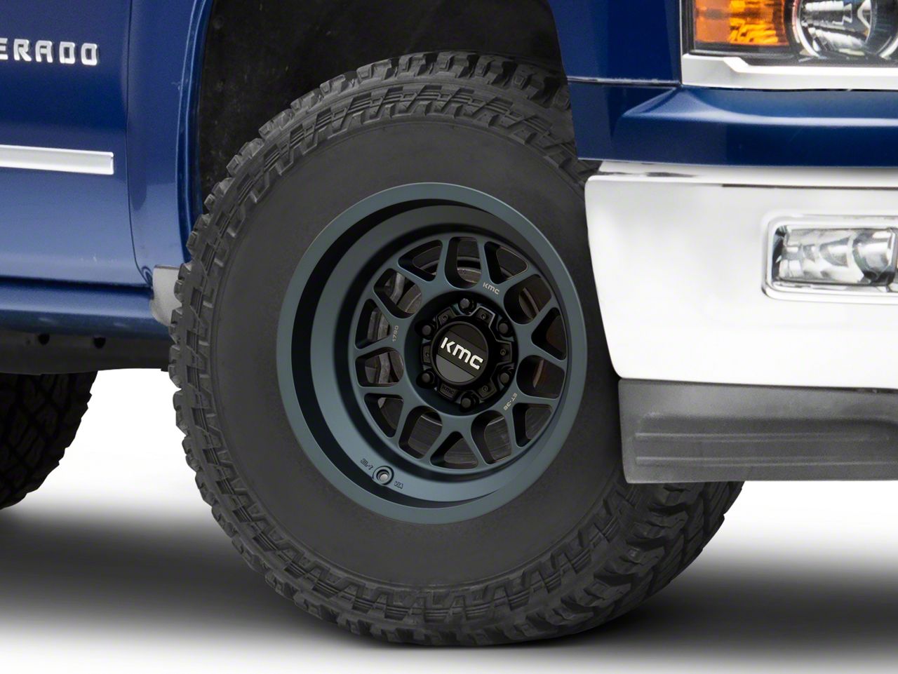 Application. This KMC Terra Metallic Blue 6-Lug Wheel; 17x8.5; -10mm Offset, with a backspacing of 4.357 Inch, 110.7mm and a bolt pattern of 6 x 139.7mm (6 x 5.5-Inch), offers superior alignment and stability. It's precisely engineered to enhance your vehicle's performance. Designed to fit 14-18 Silverado 1500 models, it ensures a perfect fit and impeccable style. Sold individually.