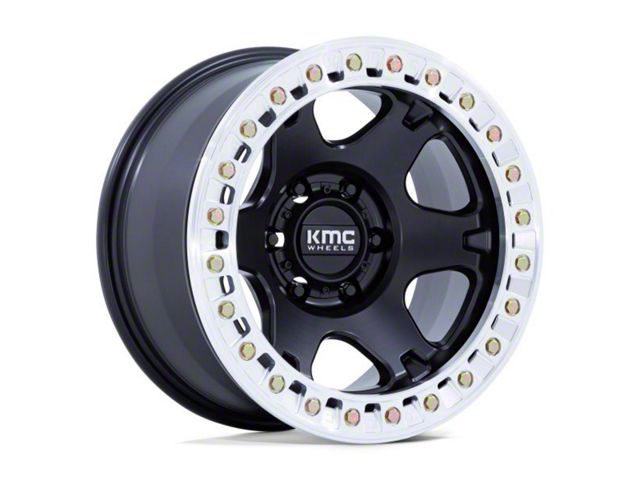 The 17x9 KMC VI Beadlock Satin Black with Machined Ring 8-Lug Wheel; 17x9; -38mm Offset is completed in a satin black machined finish with a machined ring for an aggressive off-road appearance that will make everyone stop and stare with envy.