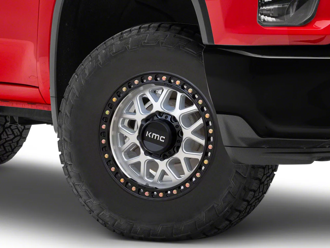 Application. This KMC GRS Machined with Satin Black Lip 8-Lug Wheel; 18x9; 18mm Offset, with a backspace of 5.709 Inch, 145mm and bolt pattern of 8 x 180mm (8 x 7.08661-Inch), is designed to provide not only a striking visual appeal but also to contribute significantly to the alignment and driving stability of the vehicle. Its specifications ensure a precise fit with the vehicle model, enhancing the overall driving experience. Built to fit the 2020-2026 Silverado 3500 HD SRW, this wheel is sold individually.