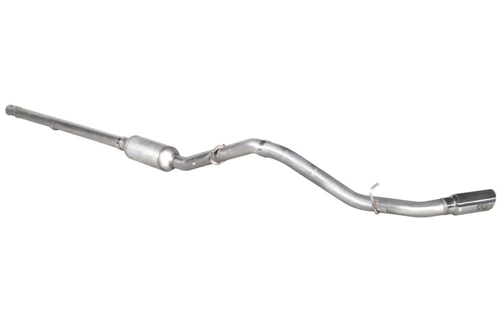Aggressive Exhaust Note. If your truck is only generating a meek sound, then replace your existing exhaust system with this Single Exhaust System with Polished Tip and Side Exit Location to let it create an attention-grabbing roar. Built with a single perforated tube muffler style, this exhaust system enables your truck to produce an aggressive exhaust note that can capture the attention of everyone.