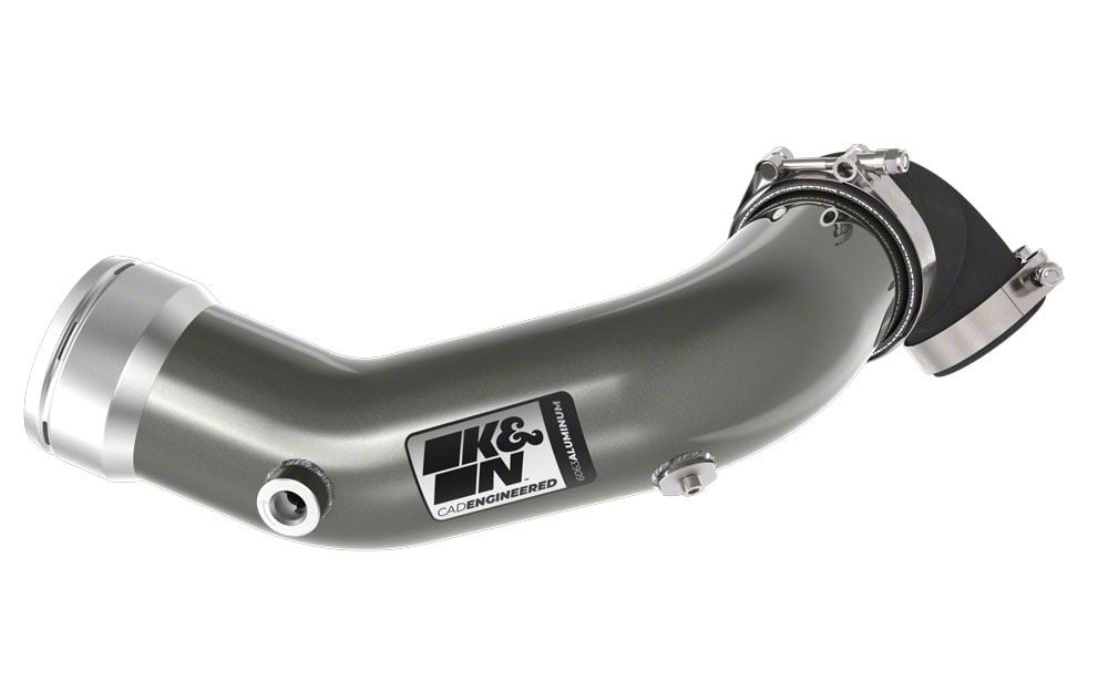 Optimized Engine Performance. Enhance the efficiency and performance of your 2017-2026 6.7L Powerstroke F-250 Super Duty with the K&N Charge Pipe Kit. This kit features a free-flowing design with mandrel-bent aluminum tubing that minimizes air pressure loss, ensuring that your engine receives a more consistent and powerful air supply. The light gray finish adds a subtle aesthetic improvement under the hood, complementing the overall engineering of the vehicle.