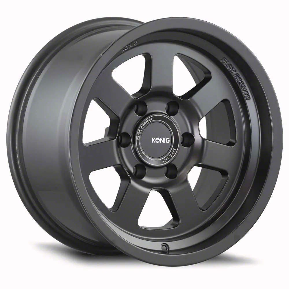 The 18x9 Konig HT2 Matte Black 6-Lug Wheel is completed in a high-quality matte black finish that will be the envy of everyone. For added protection and good looks, there is a durable clear coat that withstands the rigors of everyday driving,