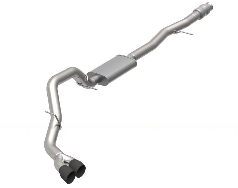 Hardwearing Build Quality. This exhaust is manufactured from high-grade 3.50-inch 304 tubular stainless steel using specialized fabrication methods. The result is a cat-back system that offers exceptional durability, maximum corrosion resistance, and a turbulence-free inner surface. Finally, this exhaust includes a pair of slant-cut black exhaust tips for a sporty look.