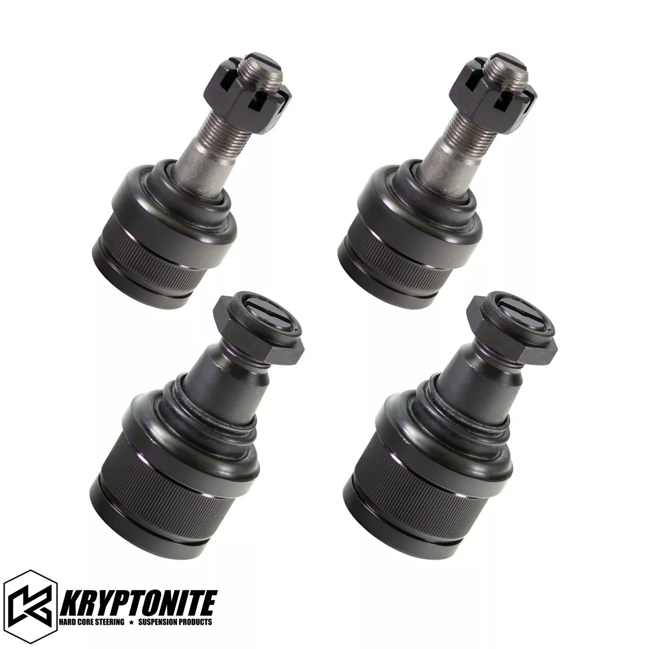 Durability and Performance. The Kryptonite Products Upper and Lower Ball Joint Package provides unmatched strength and reliability for 1999-2022 4WD F-250 Super Duty models. Crafted from heat-treated 4140 chromoly steel, these ball joints are engineered to handle the demands of heavy-duty towing and off-road performance. Designed with a press-in installation method and a serviceable grease port, they ensure long-lasting functionality and easy maintenance, keeping your suspension system running smoothly.