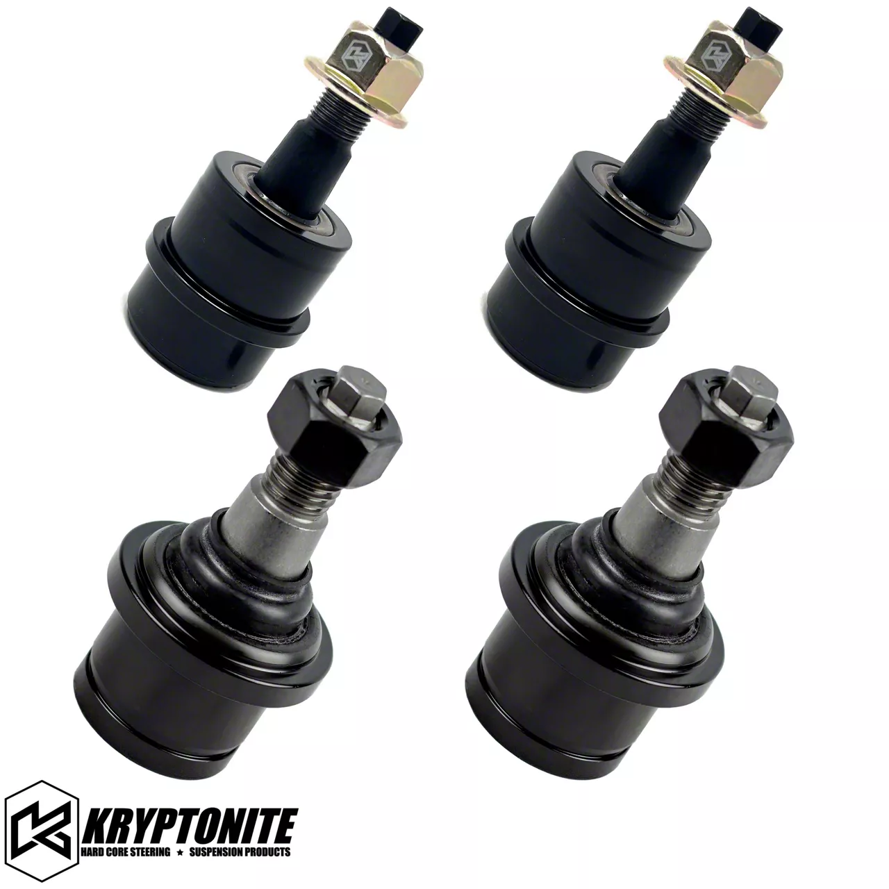 Heavy-Duty Steering and Suspension Upgrade. The Kryptonite Products Front Upper and Lower Ball Joint Package is built to handle the toughest off-road and heavy-duty driving conditions while restoring precise steering and suspension performance. Designed as a direct replacement for factory joints, this kit significantly improves strength, rigidity, and long-term reliability—making it ideal for lifted or hard-working 4WD RAM 2500 trucks.