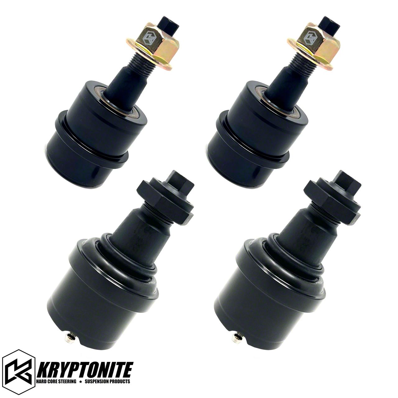 Heavy-Duty Performance. Kryptonite Products Ball Joint Package enhances steering response and handling precision, built for demanding off-road and towing conditions. With high-strength 4140 chromoly studs and oversized internals, these ball joints offer improved durability and rigidity over stock, supporting heavy-duty loads and extreme conditions. Full fitment: 2013-2026 Four-Wheel Drive Dodge RAM 3500 models.