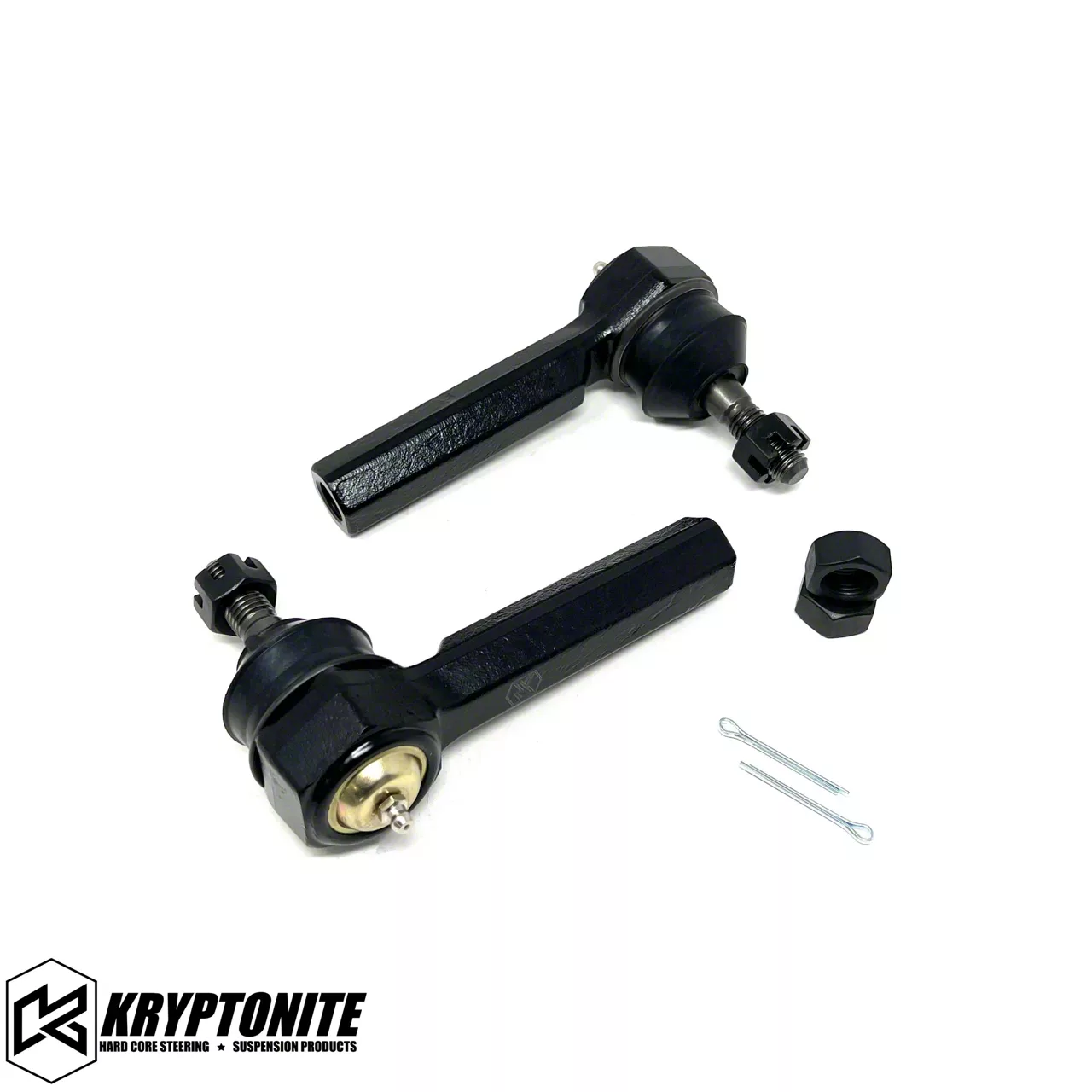In recent laboratory strength tests we applied enough pulling pressure to rip apart the OEM, Aftermarket, and Kryptonite series tie rods. The OEM tie rods fail at 9000 pounds of pressure. The much larger diameter aftermarket tie rods designed to fit lifted suspension trucks, failed at 17000 pounds of pressure. Kryptonite tie rods held up to an incredible 21000 pounds of pressure before pulling apart.