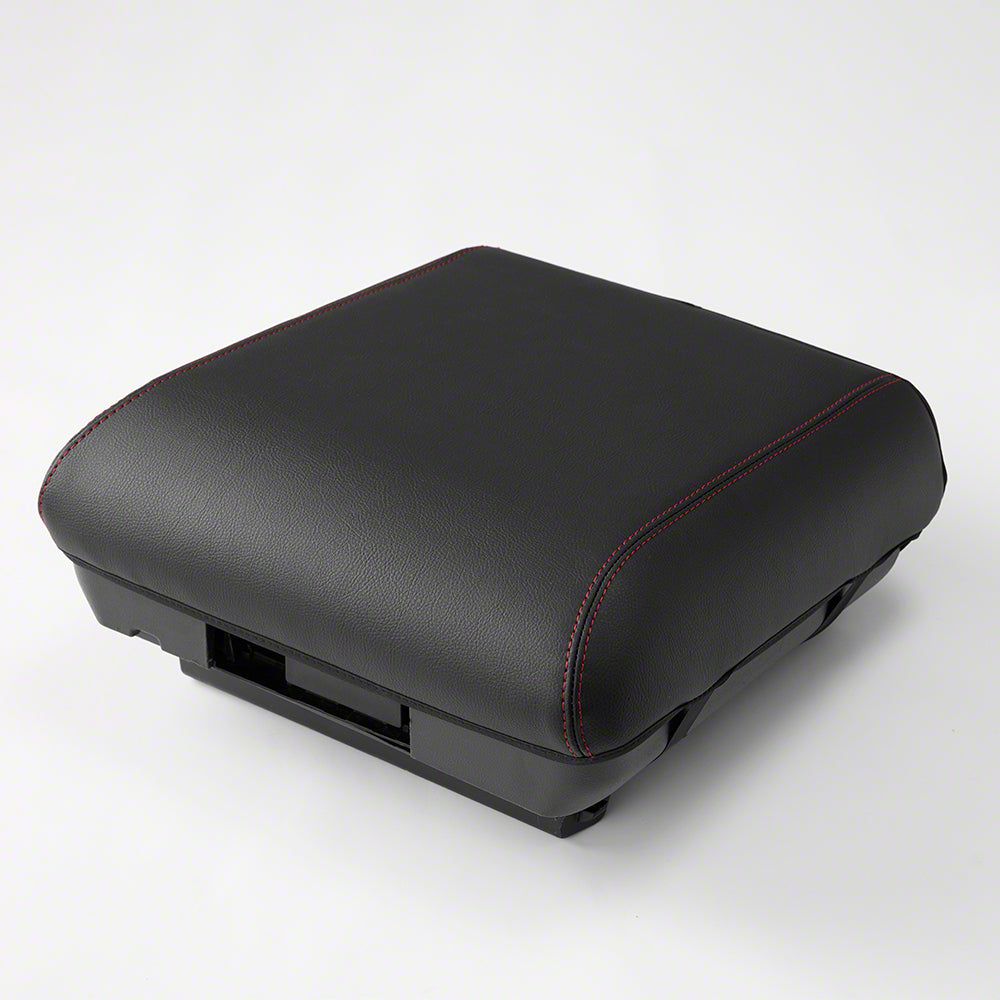Kustom Interior Premium Artificial Leather Center Console Lid Armrest Cover; Black with Red Stitching (21-26 F-150 w/ Full-Through Non-Work Surface Center Console)Find parts that fit my vehicle
