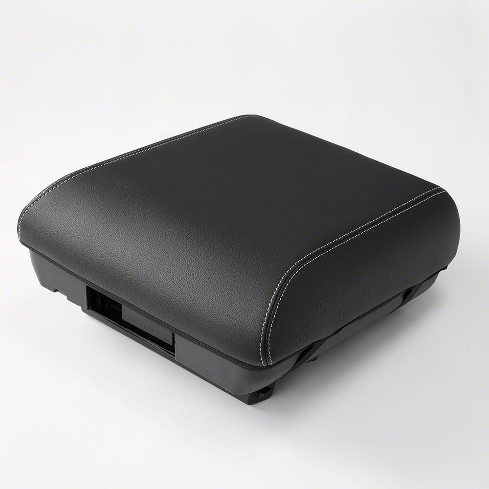 Kustom Interior Premium Artificial Leather Center Console Lid Armrest Cover; Black with White Stitching (21-26 F-150 w/ Full-Through Non-Work Surface Center Console)Find parts that fit my vehicle