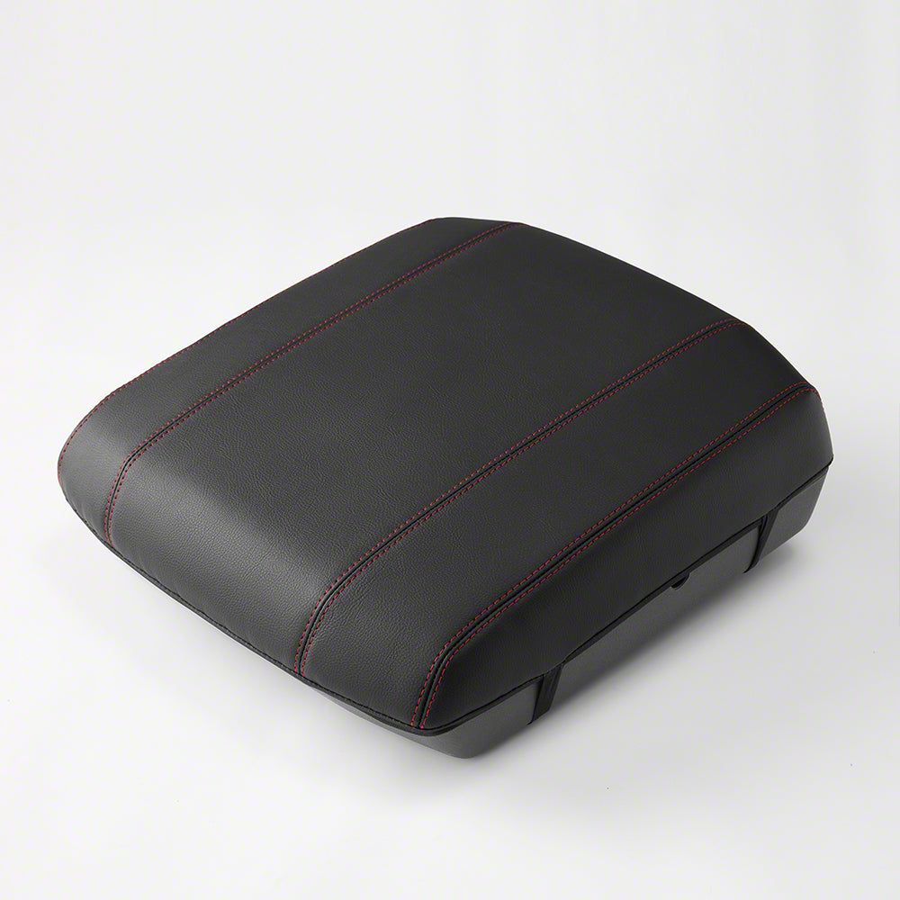 Kustom Interior Premium Artificial Leather Center Console Lid Armrest Cover; Black with Red Stitching (09-18 RAM 2500)Find parts that fit my vehicle
