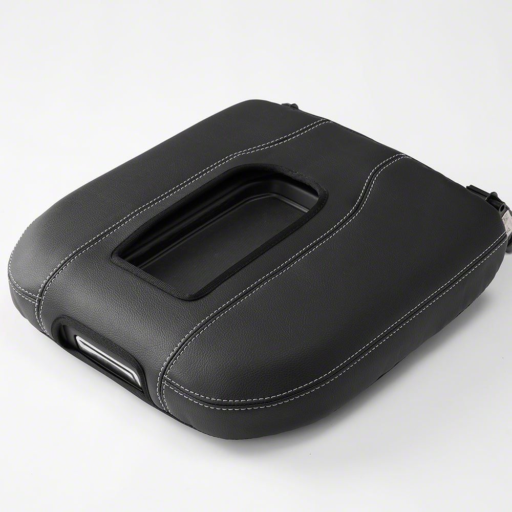 Kustom Interior Premium Artificial Leather Center Console Lid Armrest Cover; Black with White Stitching (19-26 Silverado 1500 w/ Bucket Seats)Find parts that fit my vehicle